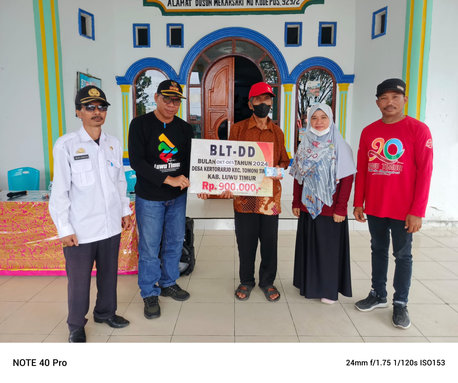 Luwu Timur-Sebanyak 20 keluarga di Desa Kertoraharjo, Kecamatan Tomoni Timur, menerima Bantuan Langsung Tunai Dana Desa (BLT DD) untuk Triwulan IV periode Oktober, Nopember,Desember pada Rabu (11/12/2024). Total bantuan sebesar Rp18 juta diserahkan langsung kepada 20 Kepala Keluarga Penerima Manfaat (KPM), dengan masing-masing keluarga menerima Rp.900 ribu.