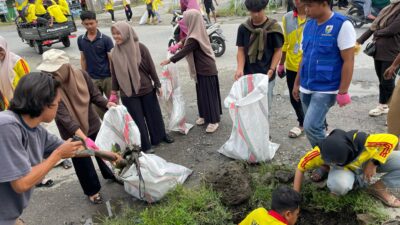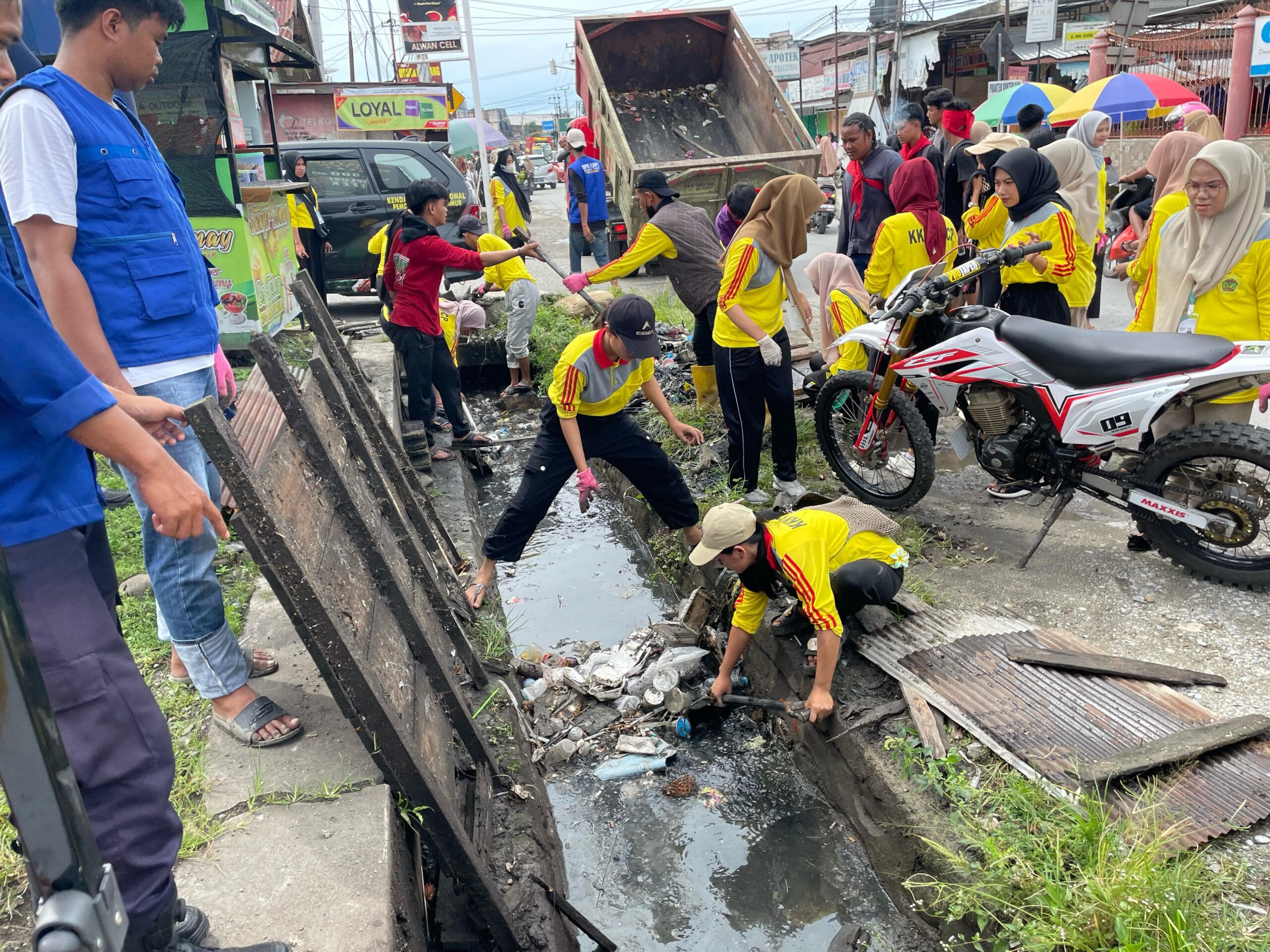 Dengan penuh semangat, para peserta membersihkan sampah yang berserakan di sepanjang jalan utama sekaligus mengedukasi warga tentang pentingnya memilah dan mendaur ulang sampah.