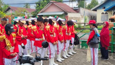 Luwu Timur, Luwurayapos.com – Kepala SMP Negeri 1 Tomoni, Rustan, memberikan motivasi dan semangat kepada para peserta lomba LKBB Pramuka dalam apel pagi yang berlangsung di halaman sekolah, didampingi oleh pelatih, Roslina, S.Pd., M.Pd. 18/4/2026