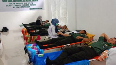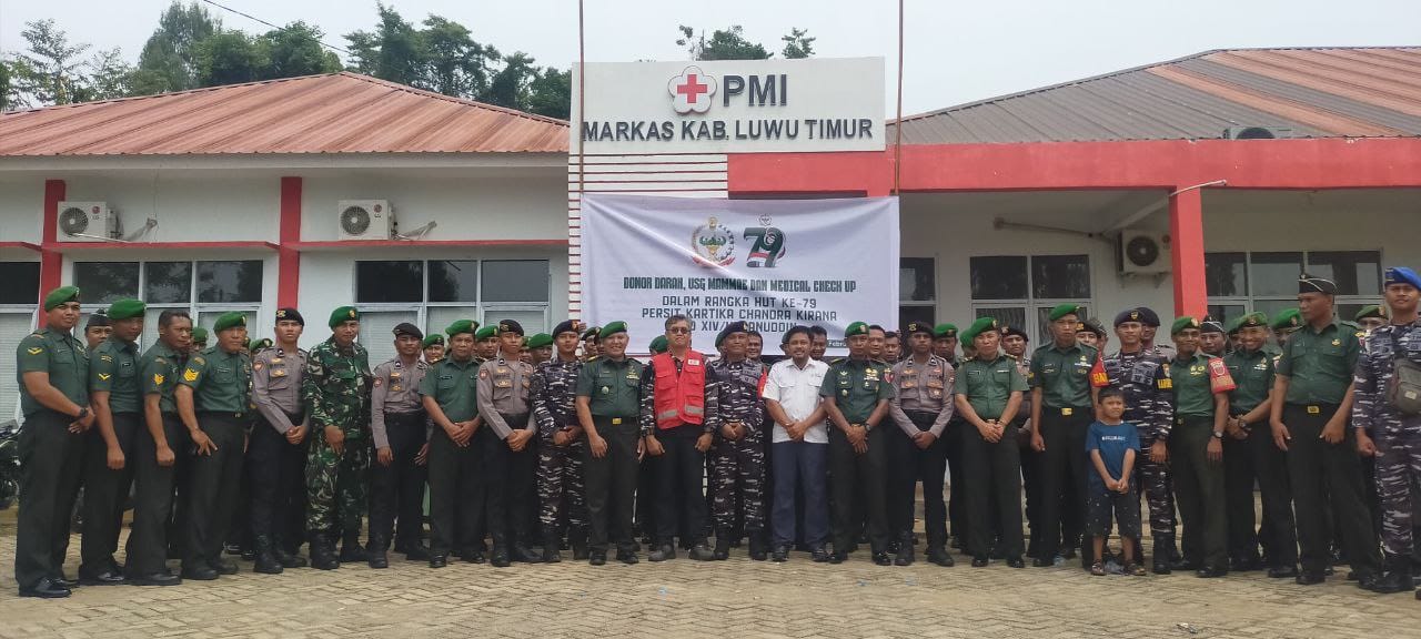 Luwu Timur,Malili – Dalam rangka memperingati HUT ke-79 Persit Kartika Chandra Kirana PD XIV/Hasanudin, Kodim 1403/Palopo Wilayah Luwu Timur menggelar bakti sosial donor darah di Kantor PMI Kabupaten Luwu Timur, Desa Puncak Indah, Kecamatan Malili. Kegiatan ini dimulai pukul 07.30 WITA dan diikuti oleh ratusan peserta dari berbagai instansi.(10/02/2025).