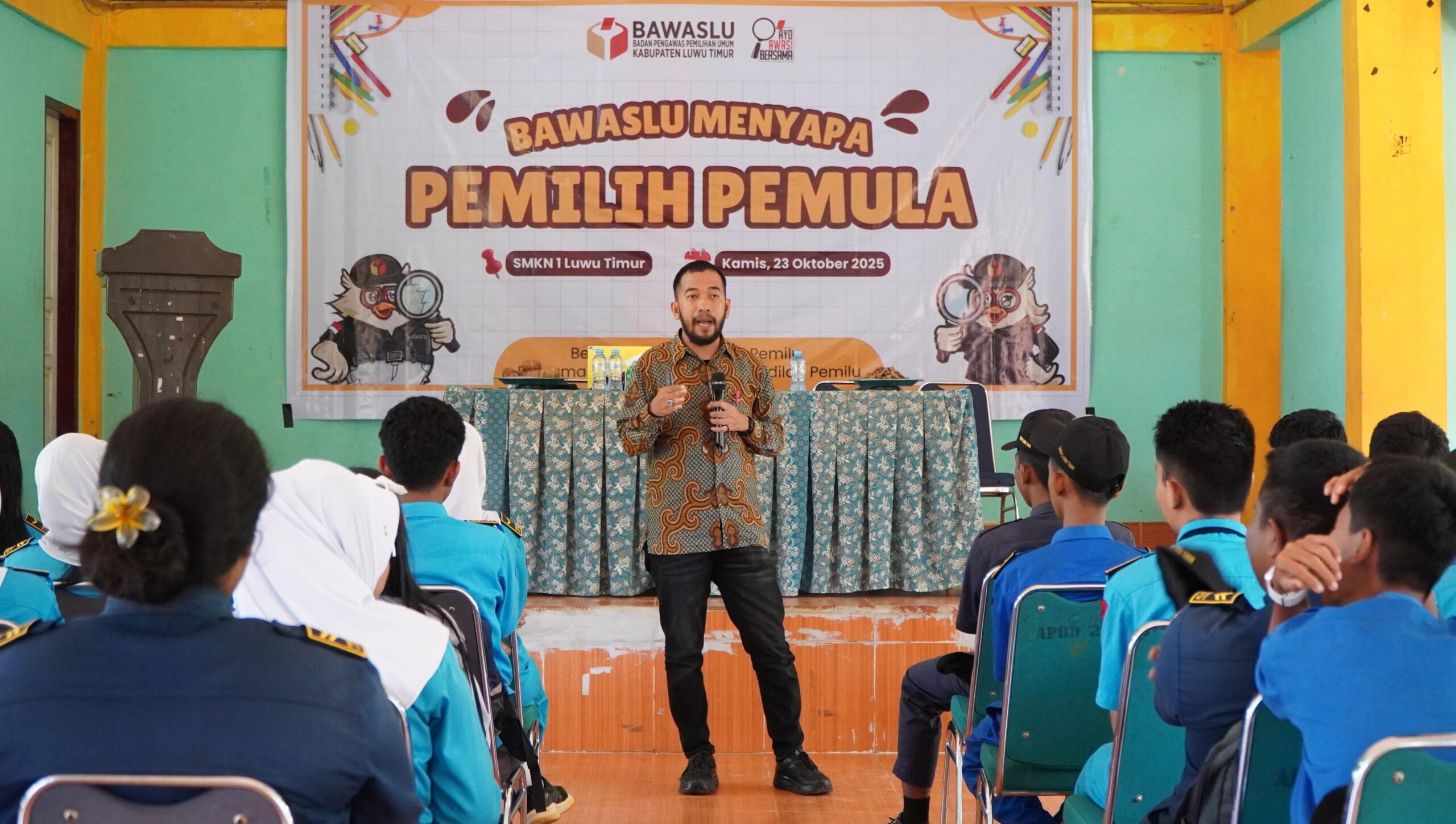 Kalimat itu menjadi penegas semangat Bawaslu dalam menanamkan nilai-nilai pengawasan partisipatif kepada para pelajar melalui kegiatan Bawaslu Menyapa Pemilih Pemula di SMKN 1 Luwu Timur, Kamis (23/10/2025).