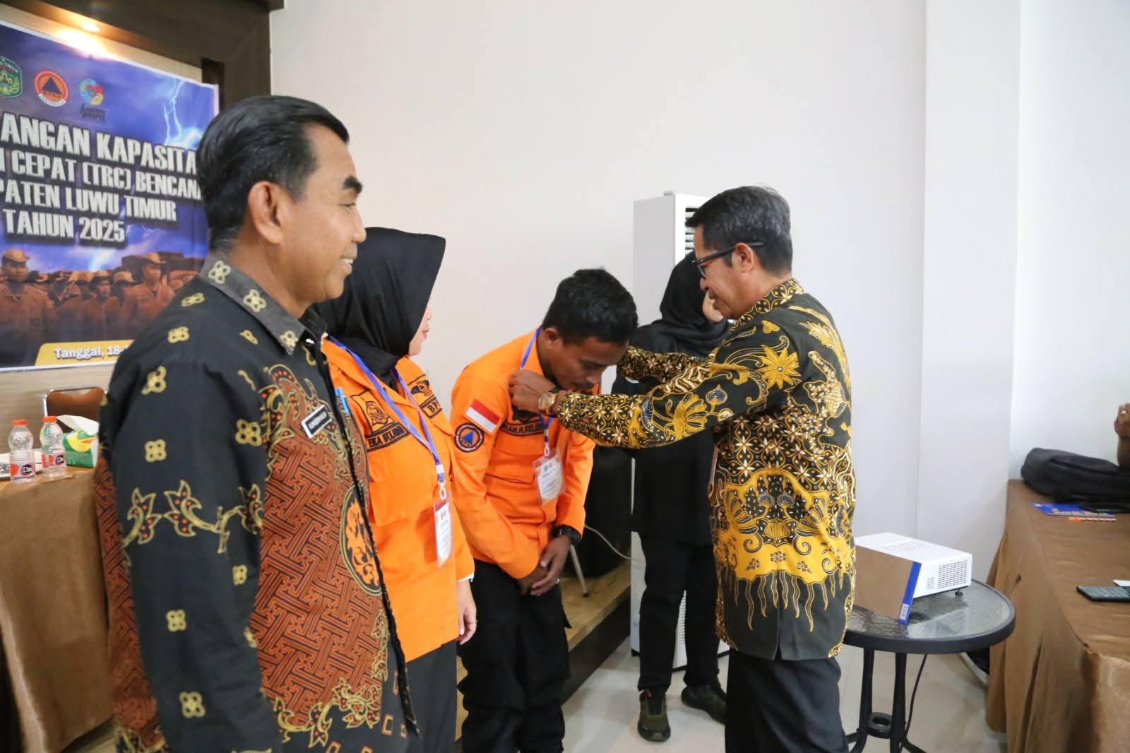 Pembukaan Pengembangan Kapasitas Tim Reaksi Cepat (TRC) Bencana Kabupaten Luwu Timur ini ditandai dengan pemasangan kartu tanda peserta oleh Asisten Administrasi Umum bersama Kepala Pelaksana BPBD Lutim kepada 2 perwakilan. (rhj/ikp-humas/kominfo-sp/LRP)