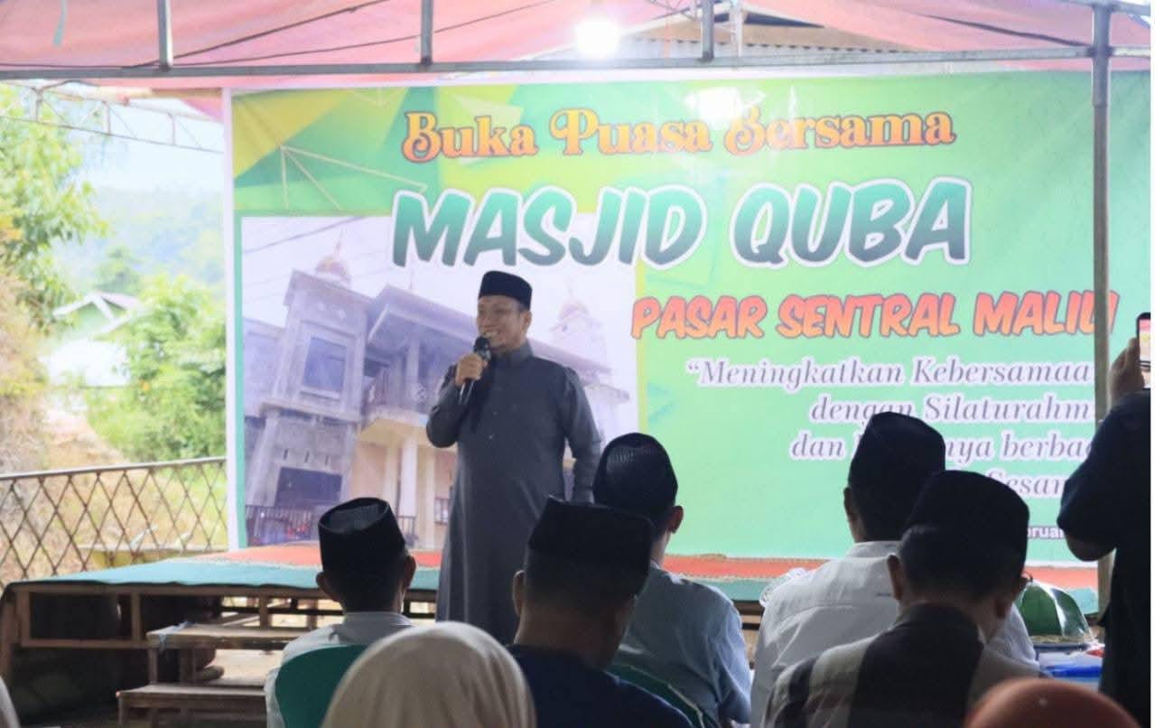 Luwu Timur, Luwurayapos.com – Bupati Luwu Timur, Irwan Bachri Syam, menghadiri acara buka puasa bersama warga Desa Baruga di Masjid Quba, Pasar Sentral Malili, Sabtu (21/02/2026).
