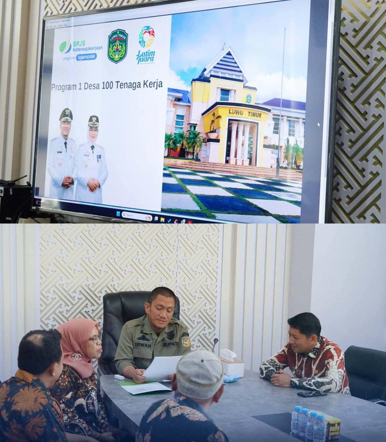 Luwu Timur, Luwurayapos.com – Program 100 Tenaga Kerja per Desa siap ditingkatkan tahun 2026 dengan tujuan untuk memperluas cakupan perlindungan jaminan sosial BPJS Ketenagakerjaan bagi pekerja rentan di 128 desa/kelurahan se Kabupaten Luwu Timur.