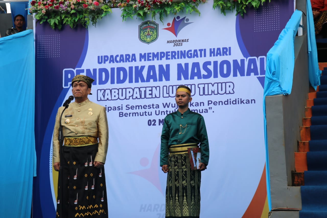 Luwurayapos.com, Luwu Timur – Momen Hari Pendidikan Nasional (Hardiknas) Tahun 2025 dimanfaatkan Bupati Luwu Timur, H. Irwan Bachri Syam, untuk menyampaikan kabar gembira bagi dunia pendidikan di Bumi Batara Guru.