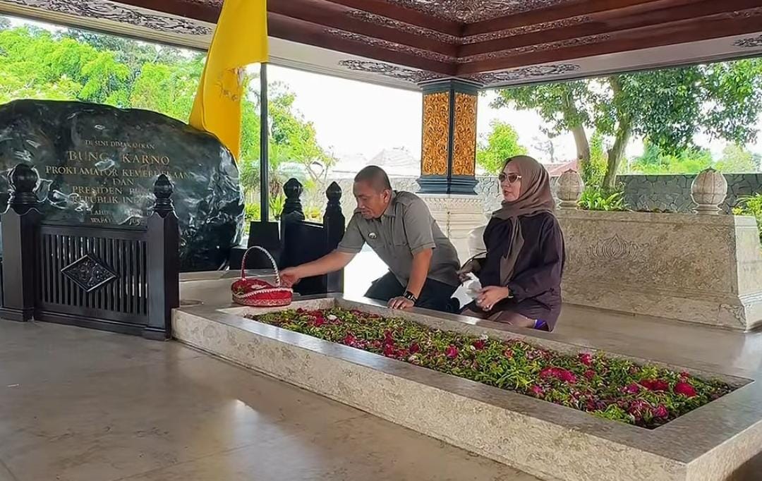 Di tempat peristirahatan Bung Karno, Bupati Irwan tampak khusyuk memanjatkan doa, mengenang perjuangan dan pengorbanan sang tokoh bangsa dalam mempersatukan negeri.