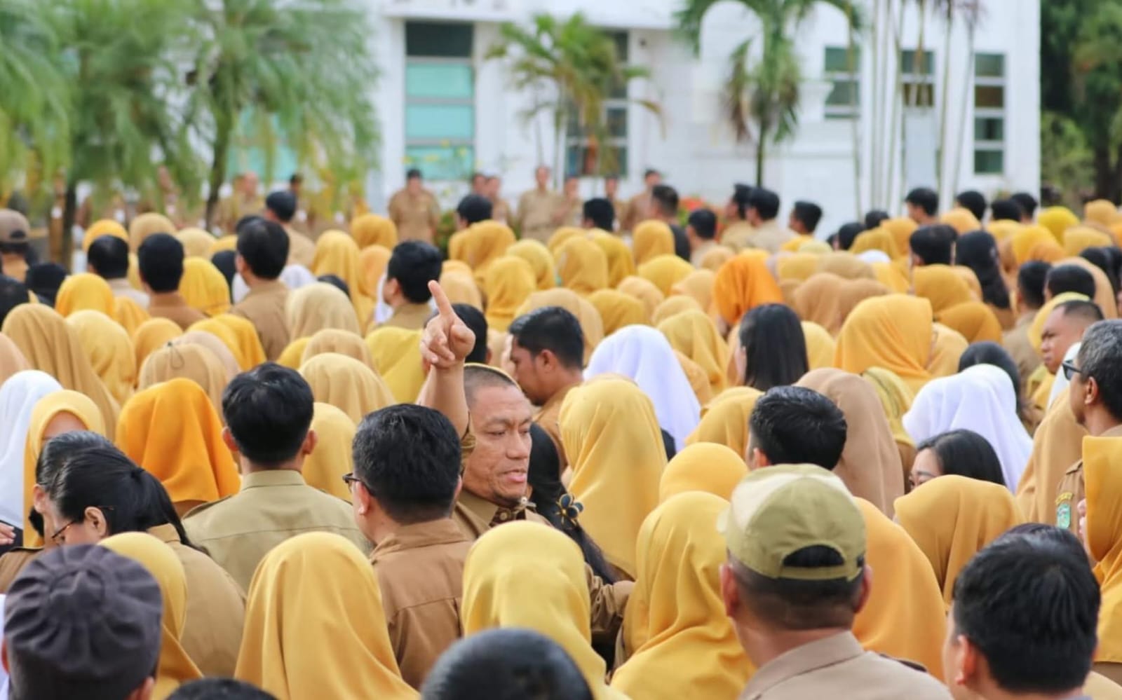“Bayangkan jika posisi dibalik, kalian yang memimpin apel, lalu Sekda yang duduk, main HP di belakang. Apakah kalian bisa terima itu? Ini bukan hanya soal sopan santun, tapi juga soal profesionalitas dan etika,” katanya dengan tegas.
