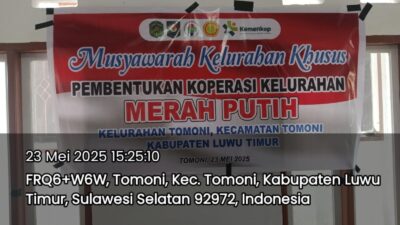 Luwurayapos.com, Luwu Timur – Semangat kebersamaan dan optimisme menyelimuti Kelurahan Tomoni, Kecamatan Tomoni, Kabupaten Luwu Timur, pada Jumat sore (23/05). Sebuah tonggak penting dalam upaya peningkatan ekonomi kerakyatan telah tercatat dengan suksesnya musyawarah pembentukan Koperasi Merah Putih Kelurahan Tomoni, yang diharapkan menjadi motor penggerak kemandirian ekonomi masyarakat setempat.