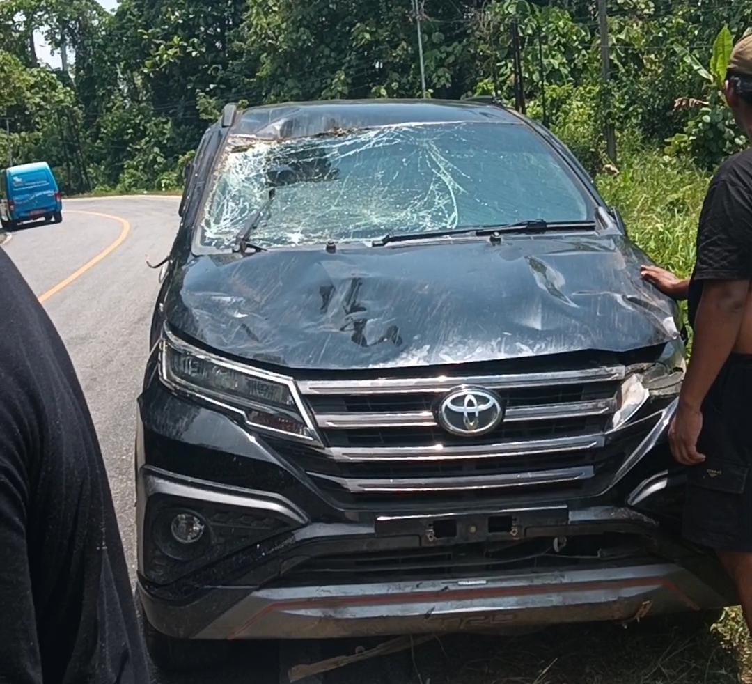 Luwu Timur, Luwurayapos.com — Sebuah mobil Toyota Rush berwarna hitam mengalami kecelakaan tunggal di tikungan Cerekang, Kecamatan Malili, Kabupaten Luwu Timur, Selasa (21/10/2025).