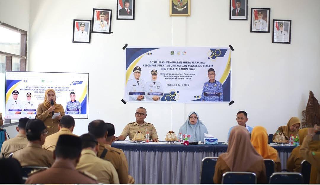 Luwu Timur , Luwurayapos.com – Dinas Pengendalian Penduduk dan Keluarga Berencana (PPKB) Kabupaten Luwu Timur menggelar Sosialisasi Penguatan Mitra Kerja bagi Kelompok Pusat Informasi dan Konseling Remaja (PIK-Remaja) Tahun 2026 di Aula Kantor Dinas PPKB, Malili, Selasa (28/4/2026).