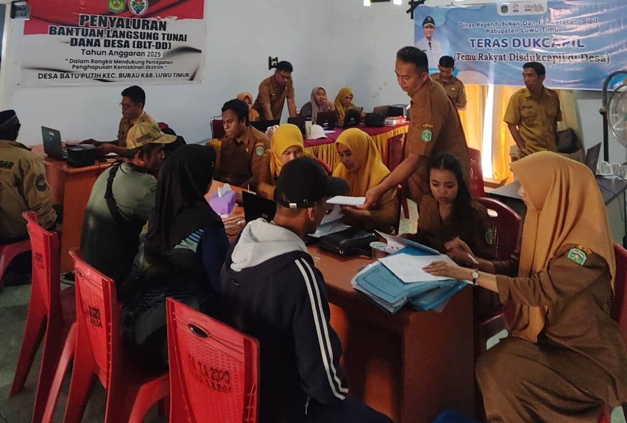 Kali ini, kegiatan Teras Dukcapil berlangsung di Desa Batu Putih, Kecamatan Burau, selama dua hari, Senin hingga Selasa (13–14 Oktober 2025), dan dilanjutkan di Desa Kawata, Kecamatan Wasuponda, Rabu (15 Oktober 2025), dan di Desa Pancakarsa, Kecamatan Mangkutana, Kamis (16/10/2025).