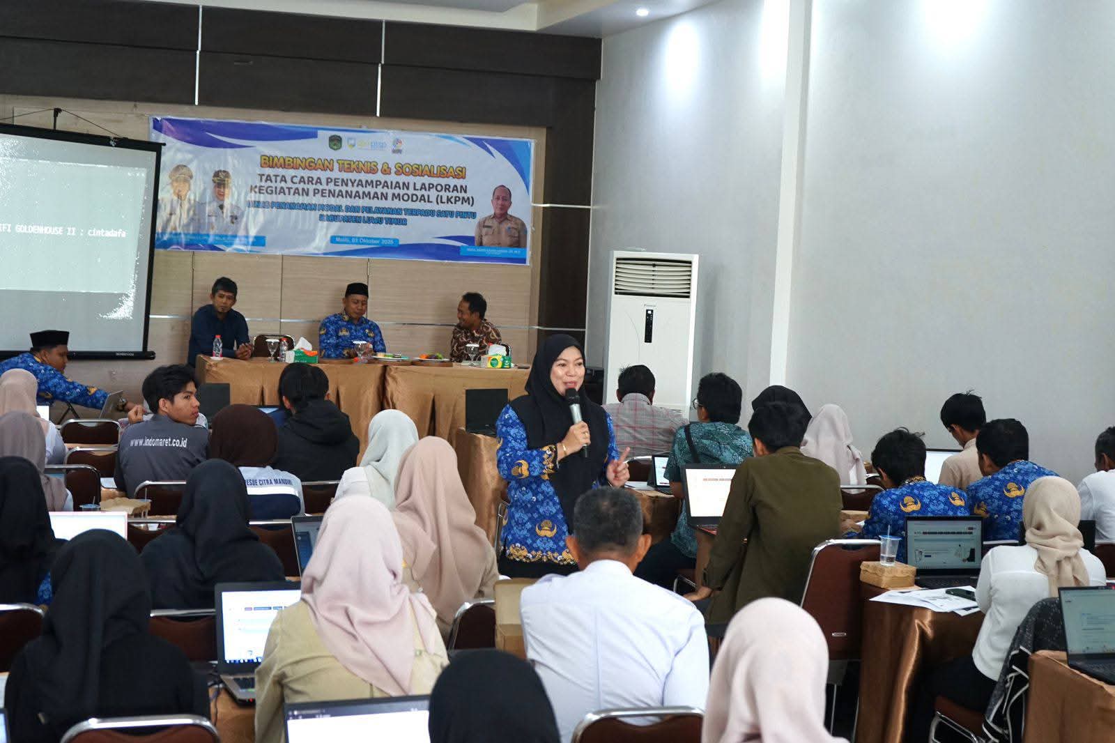 Salah satunya melalui kegiatan Bimbingan Teknis (Bimtek) dan Sosialisasi Tata Cara Penyampaian Laporan Kegiatan Penanaman Modal (LKPM) melalui sistem Online Single Submission (OSS) yang digelar di Aula Wisma Golden Malili, Rabu (01/10/2025).