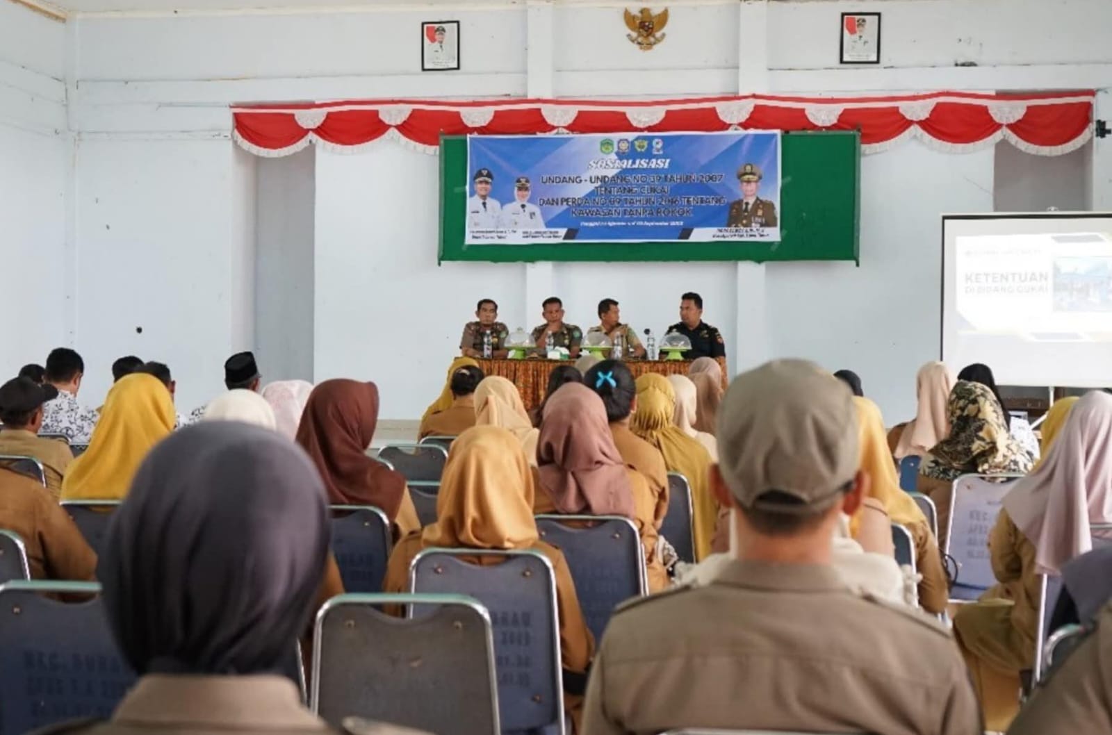 Turut hadir dalam kegiatan ini para kepala desa, kepala sekolah, kepala puskesmas, pelaku usaha warung makan, pemilik kios/toko kelontong, serta tokoh masyarakat. Kehadiran berbagai unsur ini mencerminkan dukungan kolektif untuk menciptakan lingkungan yang lebih sehat, tertib, dan bebas dari asap rokok.