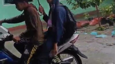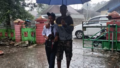 Meski diguyur Hujan deras para bapak-bapak tetap semangat mengantarkan anaknya kesekolah, Dokumentasi Terlampir