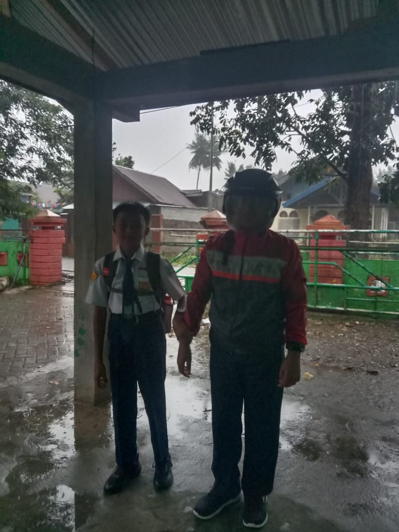 Meski diguyur Hujan deras para bapak-bapak tetap semangat mengantarkan anaknya kesekolah, Dokumentasi Terlampir