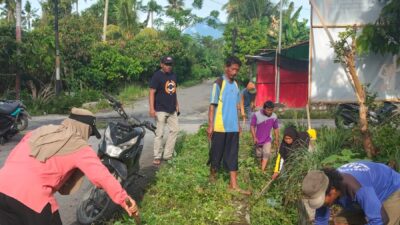 Luwu Timur, Luwurayapos.com – Pemerintah Desa Lestari, Kecamatan Tomoni, Kabupaten Luwu Timur, rutin melaksanakan kegiatan gotong royong bersama masyarakat, Jumat (6/2/2026). Kegiatan ini difokuskan pada pembersihan sampah di drainase serta pembabatan rumput di sejumlah titik lingkungan desa.