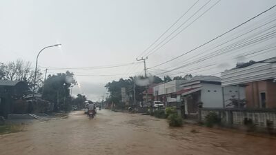 Luwurayapos.com-Luwu Timur-Mangkutana, 7 Februari 2025 – Hujan deras yang mengguyur wilayah Kecamatan Mangkutana, Kabupaten Luwu Timur, Sulawesi Selatan, menyebabkan banjir yang merendam Jalan Trans Sulawesi pada Jumat sore. Akibatnya, arus lalu lintas di jalur utama ini terganggu.