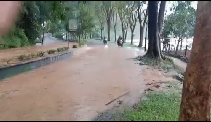 Banjir terjadi akibat curah hujan tinggi dalam waktu singkat, sehingga sistem drainase tidak mampu menampung volume air. Akibatnya, air meluap dan menggenangi jalan, menghambat aktivitas masyarakat, terutama para pegawai dan warga yang memiliki urusan di area perkantoran.
