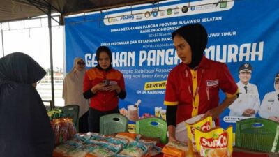 Luwurayapos.com, Luwu Timur – Menjelang Hari Besar Keagamaan Nasional (HBKN), Dinas Ketahanan Pangan Provinsi Sulawesi Selatan dan Bank Indonesia melakukan kegiatan Gerakan Pangan Murah yang serentak digelar di 24 kabupaten/kota, Rabu (04/06/2025).
