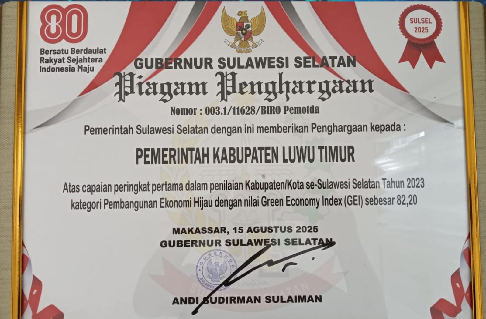 Prestasi ini semakin menegaskan posisi Luwu Timur sebagai salah satu daerah dengan tata kelola keuangan yang transparan serta memiliki komitmen kuat terhadap pembangunan berwawasan lingkungan dan berkelanjutan.