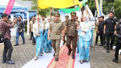 Kedatangan Kapolda bersama rombongan pejabat utama Polda Sulsel disambut langsung oleh Kapolres Luwu Utara, AKBP Nugraha Pamungkas, S.I.K., M.H., beserta jajaran dengan prosesi adat berupa pengalungan sarung, penyerahan bucket bunga, serta penampilan tari Padduppa dan jajar kehormatan.