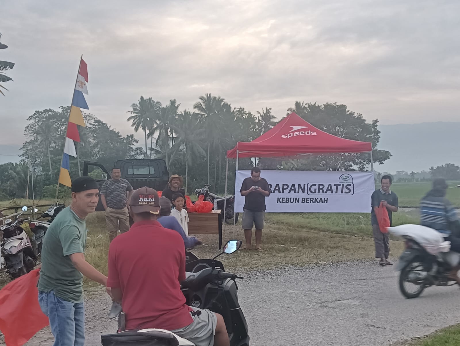 “Sarapan gratis ini merupakan kepedulian terhadap masyarakat, terutama bagi petani yang melintas akan ke sawah atau kebun mereka, Mudah-mudahan tidak sampai di sini saja, dan KEBUN BERKAH selalu di berikan rezeki dan hasil panen tanamannya selalu diberi keberhasilan ” harap Dian