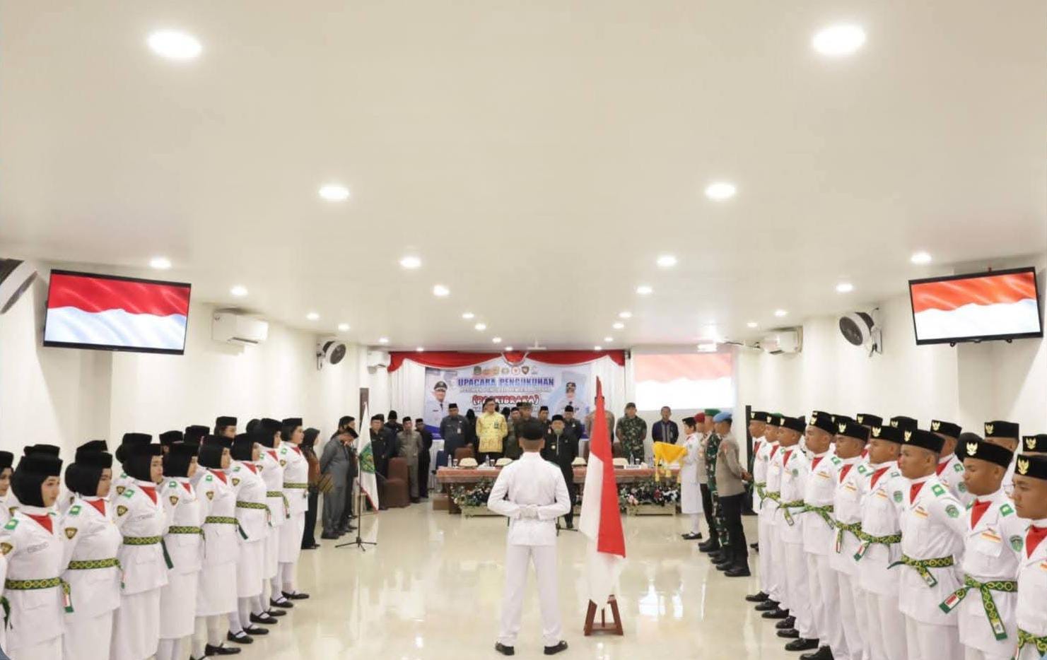 Luwurayapos.com Bupati Luwu Timur, H. Irwan Bachri Syam, bersama Forum Koordinasi Pimpinan Daerah (Forkopimda) mengukuhkan 70 Pasukan Pengibar Bendera Pusaka (Paskibraka) Merah Putih Kabupaten Luwu Timur Tahun 2025, di Aula Awana Wisma Trans, Jum’at (14/8/2025).