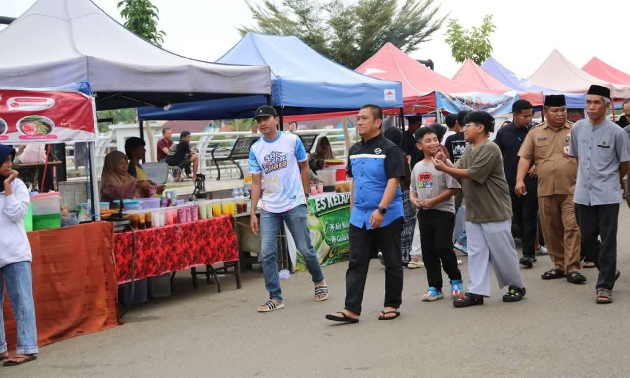 Tidak sekadar menikmati suasana sore di anjungan, Bupati Irwan juga terlihat menyusuri satu per satu stand kuliner yang berjajar di lokasi Pasar Ramadhan.