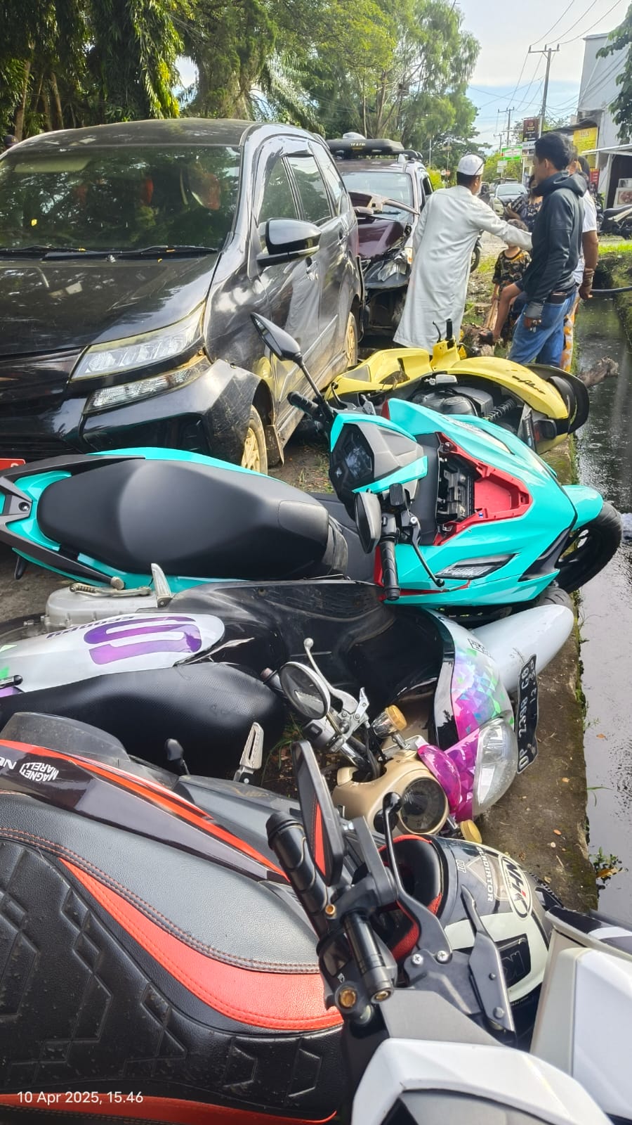 Akibat kecelakaan ini, mobil dinas Desa Parumpanai yang sedang terparkir tertabrak dari belakang. Selain itu, beberapa sepeda motor yang juga terparkir di pinggir jalan turut menjadi korban dalam insiden tersebut.