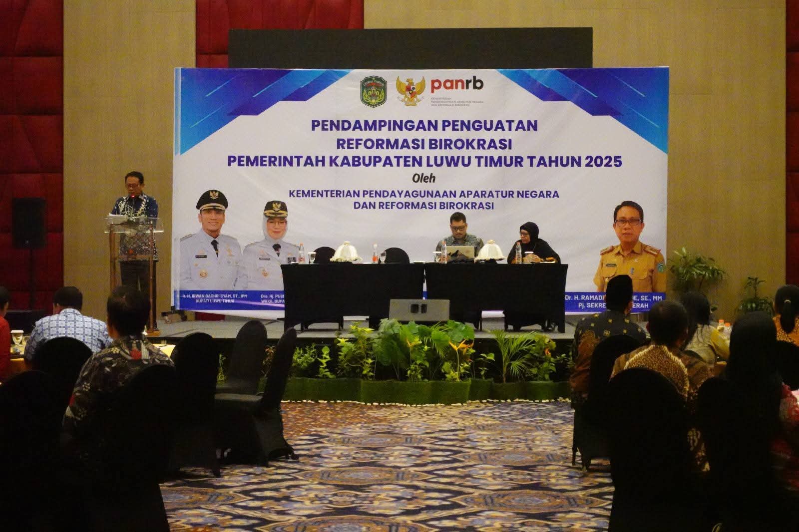 Luwu Timur, Luwurayapos.com – Pemerintah Kabupaten Luwu Timur (Pemkab Lutim) melaksanakan kegiatan Pendampingan Penguatan Reformasi Birokrasi (RB) Tahun 2025 di Hotel Gammara, Makassar, pada 21–22 November 2025.