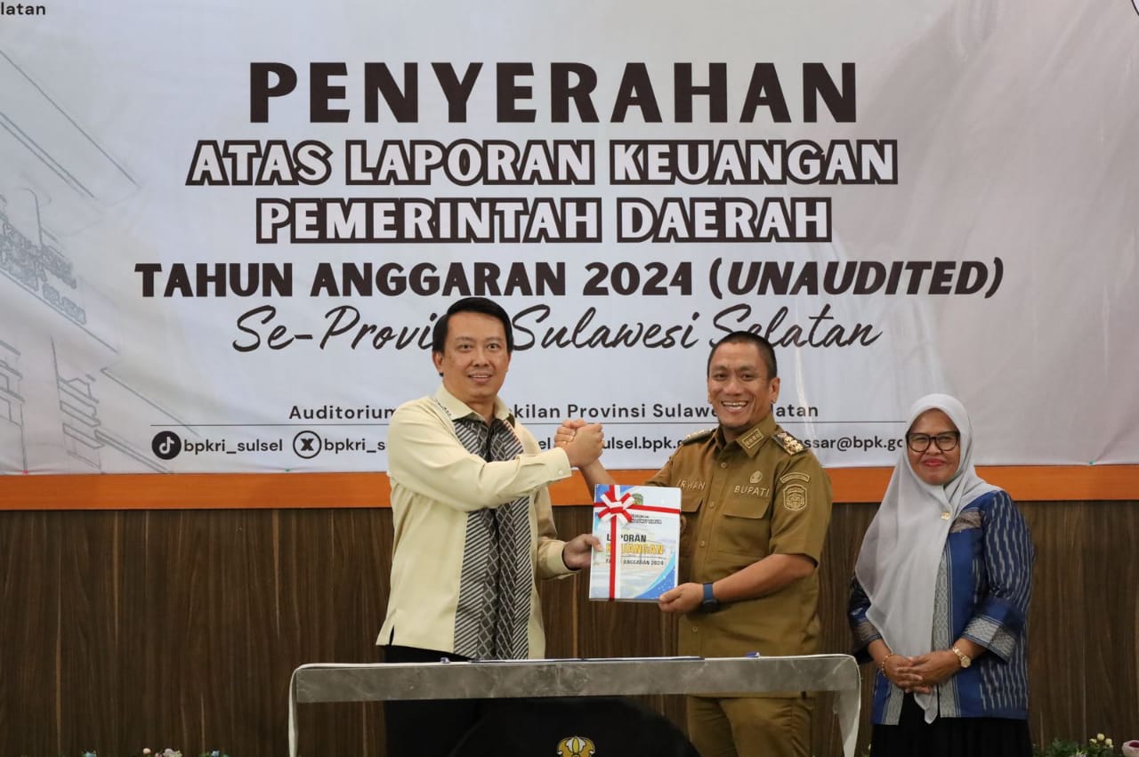 LKPD Unaudited tersebut diterima langsung oleh Kepala Perwakilan BPK Provinsi Sulsel, Winner Franky Halomoan Manalu. Proses penyerahan diawali dengan penandatanganan berita acara serah terima oleh kedua pihak.