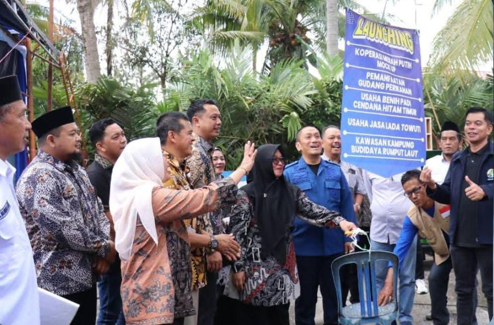 Kegiatan ini bukan sekadar pengukuhan, tetapi juga momentum peluncuran berbagai inisiatif strategis seperti launching koperasi merah putih Mock Up, penyerahan pemanfaatan gudang perikanan, penyerahan SK kawasan kampung budidaya rumput laut, serta launching dua unit usaha unggulan yakni benih padi Cendana Hitam Timur dan usaha jasa lada Towuti.