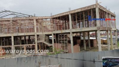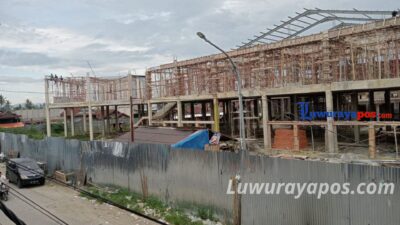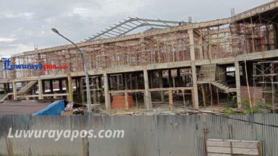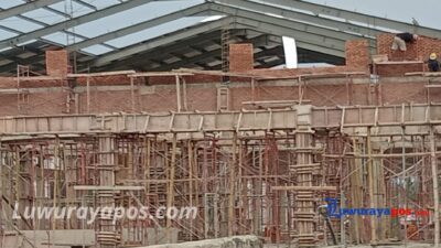 Pantauan Luwurayapos, Kamis 13/2/2025 di proyek bangunan pasar, terlihat puluhan pekerja masih mengerjakan beberapa item pekerjaan struktur