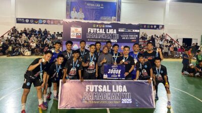 Luwurayapos.com, Luwu Timur – Tim futsal MED Pleonz (Kecamatan Malili) berhasil menorehkan sejarah baru dengan meraih gelar juara Futsal Liga Ramadhan 2025 setelah mengalahkan Batavas (Towuti) dengan skor tipis 1-0 pada partai final yang berlangsung di Gedung Olahraga (GOR) Malili, Selasa (25/03/2025) malam.