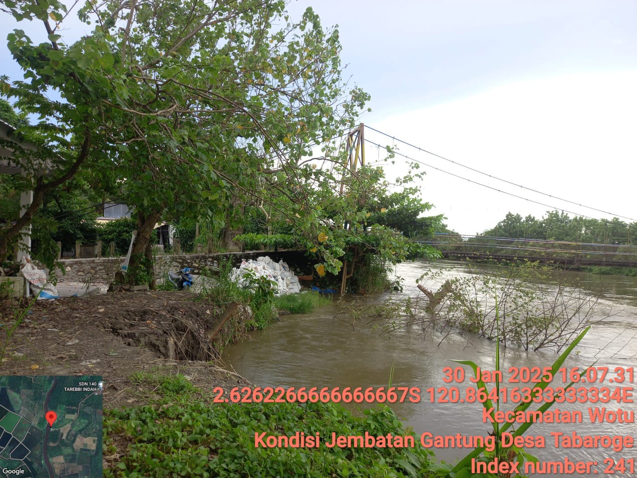 lokasi jembatan tersebut merupakan akses penghubung warga antar kampung di wilayah Desa Tabaroge dengan perkampungan di wilayah Desa Rinjani.
