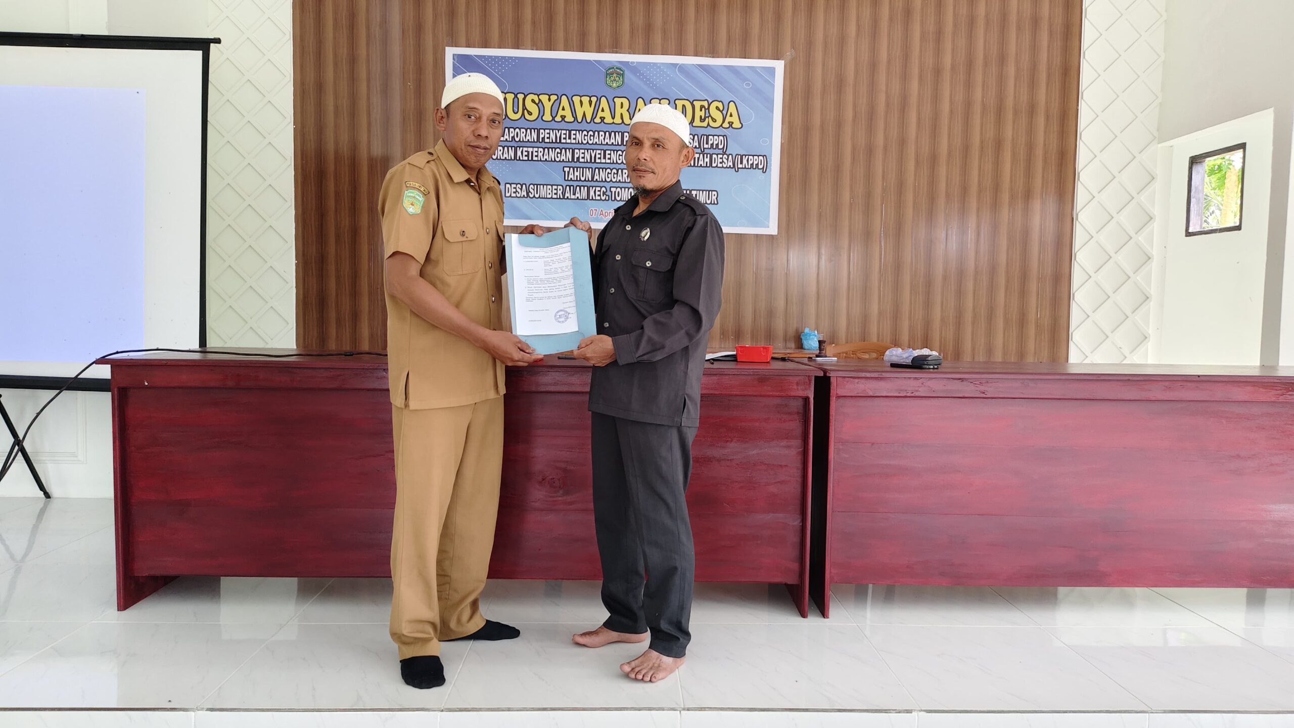 Luwu Timur, Luwurayapos.com – Pemerintah Desa Sumber Alam, Kecamatan Tomoni, Kabupaten Luwu Timur, menggelar Musyawarah Desa dalam rangka penyampaian Laporan Penyelenggaraan Pemerintahan Desa (LPPD) dan Laporan Keterangan Penyelenggaraan Pemerintahan Desa (LKPPD) Tahun Anggaran 2025, Selasa 7/4/2026