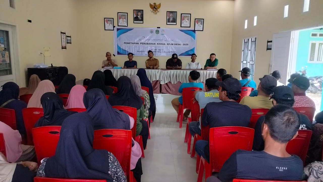 Luwu Timur, Luwurayapos.com – Pemerintah Desa Sindu Agung, Kecamatan Mangkutana, Kabupaten Luwu Timur menggelar Musyawarah Desa (Musdes) terkait perubahan Rencana Pembangunan Jangka Menengah Desa (RPJMDes) untuk menyesuaikan penambahan masa jabatan Kepala Desa selama dua tahun.
