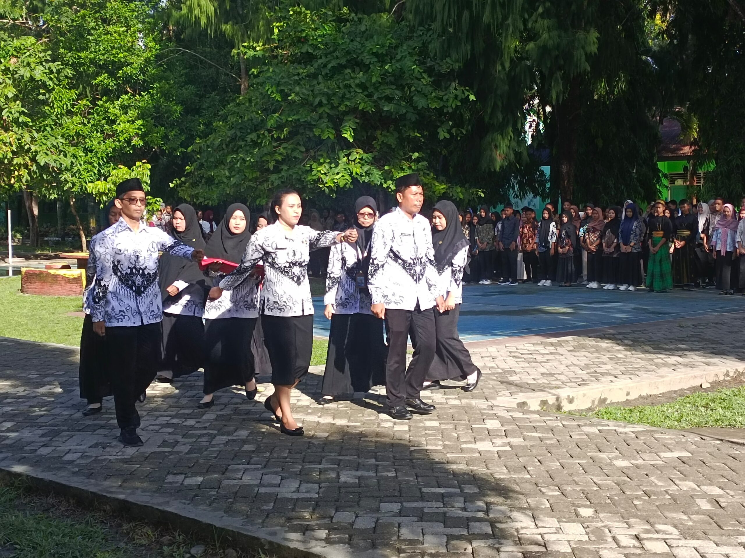 Kegiatan berlangsung khidmat di halaman sekolah sebagai bentuk penghormatan atas jasa serta dedikasi para pendidik dalam mencerdaskan kehidupan bangsa.