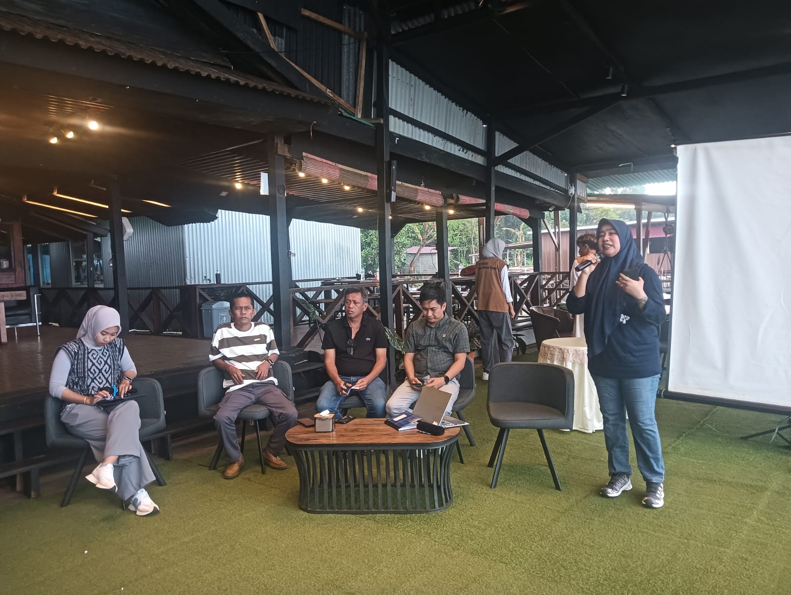 Pada sesi pemaparan materi, narasumber pertama (Aprianto) memberikan gambaran umum mengenai operasional Perumdam Waemami, termasuk struktur layanan dan upaya yang tengah dilakukan untuk peningkatan kualitas air minum. Sementara itu, pemateri kedua, Ayyub, turut memperdalam penjelasan terkait pengelolaan PDAM dan arah pengembangan yang saat ini ditempuh perusahaan.