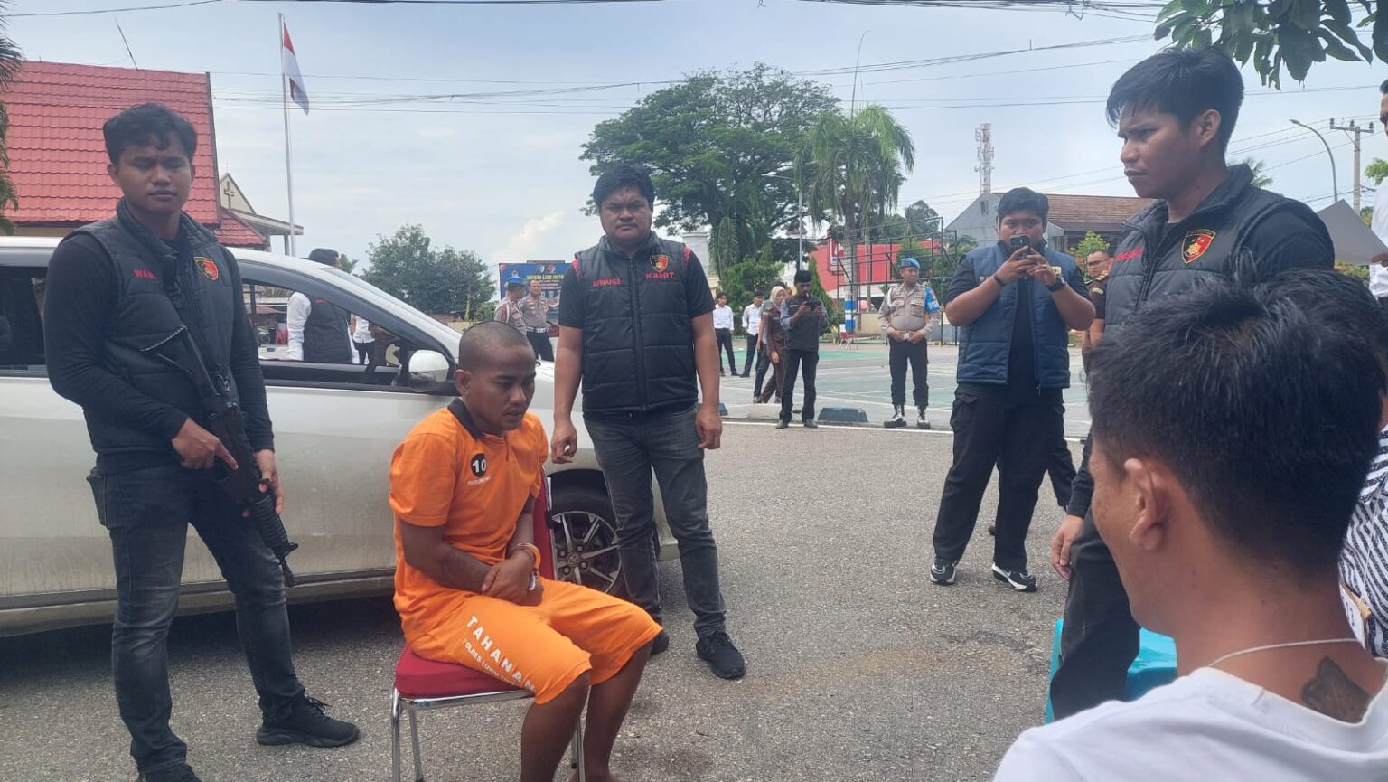 Tersangka pembunuhan berinisial A alias AG dan 7 orang saksi dihadirkan dalam rekonstruksi pembuhan tersebut.