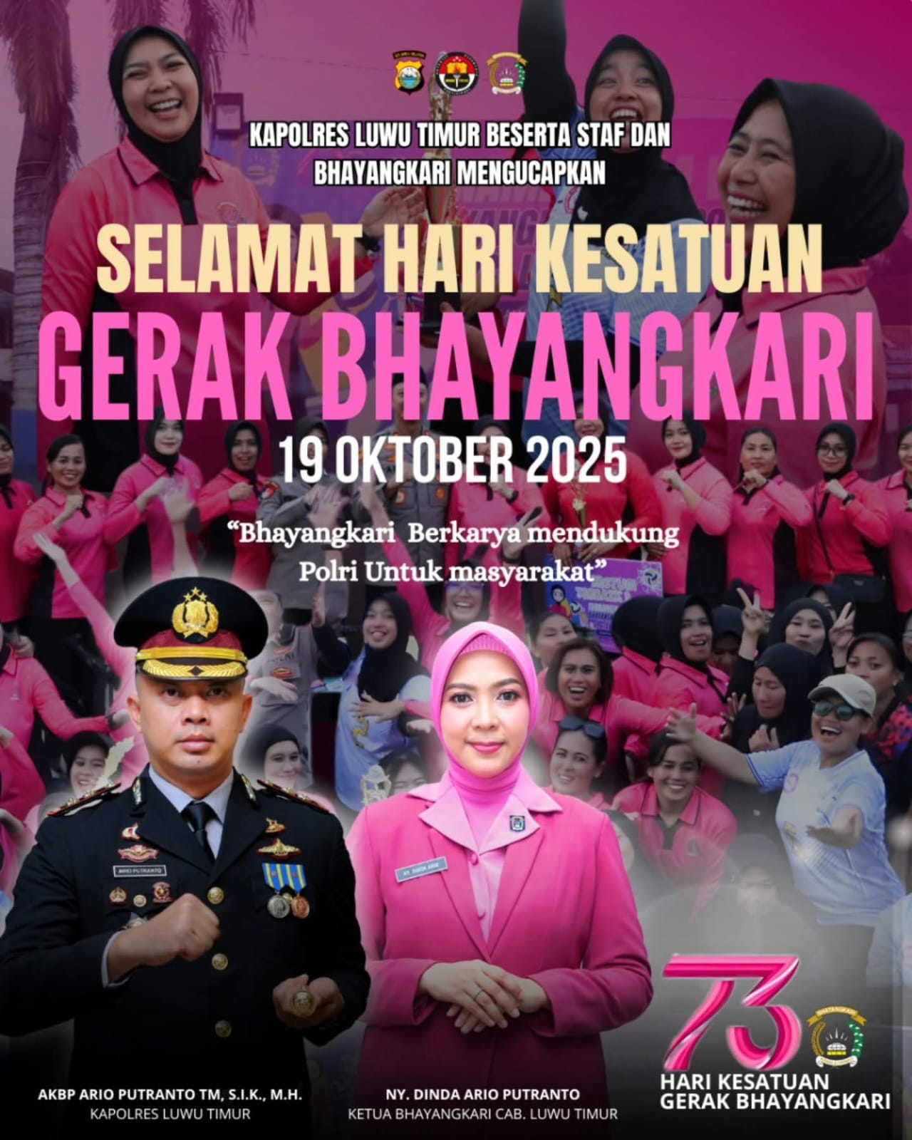 Kapolres Luwu Timur AKBP Ario Putranto TM, S.I.K., M.H. beserta jajaran mengucapkan Selamat Hari Kesatuan Gerak Bhayangkari (HKGB) ke-73. (19/10/2025)