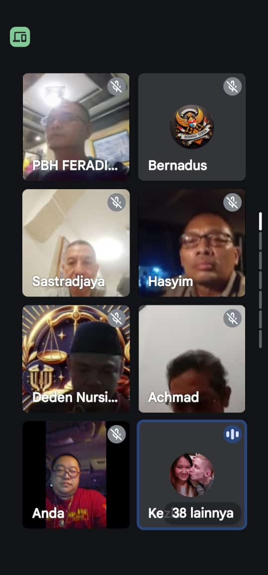 Luwurayapos. Rabu 18 September 2024. Untuk pertama kalinya Seluruh Paralegal di FERADI WPI – SUBUR JAYA LAWFIRM mendapat praktek pendidikan PERADILAN SEMU. acara diadakan melalui Google Meet. Dan Antusias peserta luar biasa, hampir 100 peserta mengikuti Praktek Peradilan Semu. Ada yang berperan sebagai Hakim, berperan sebagai Jaksa Penuntut Umum, berperan Sebagai Penasehat Hukum ( Advokat ), Saksi Ahli, Saksi Korban, Terdakwa, dan Panitera dan peserta lainnya berperan sebagai pengunjung persidangan.