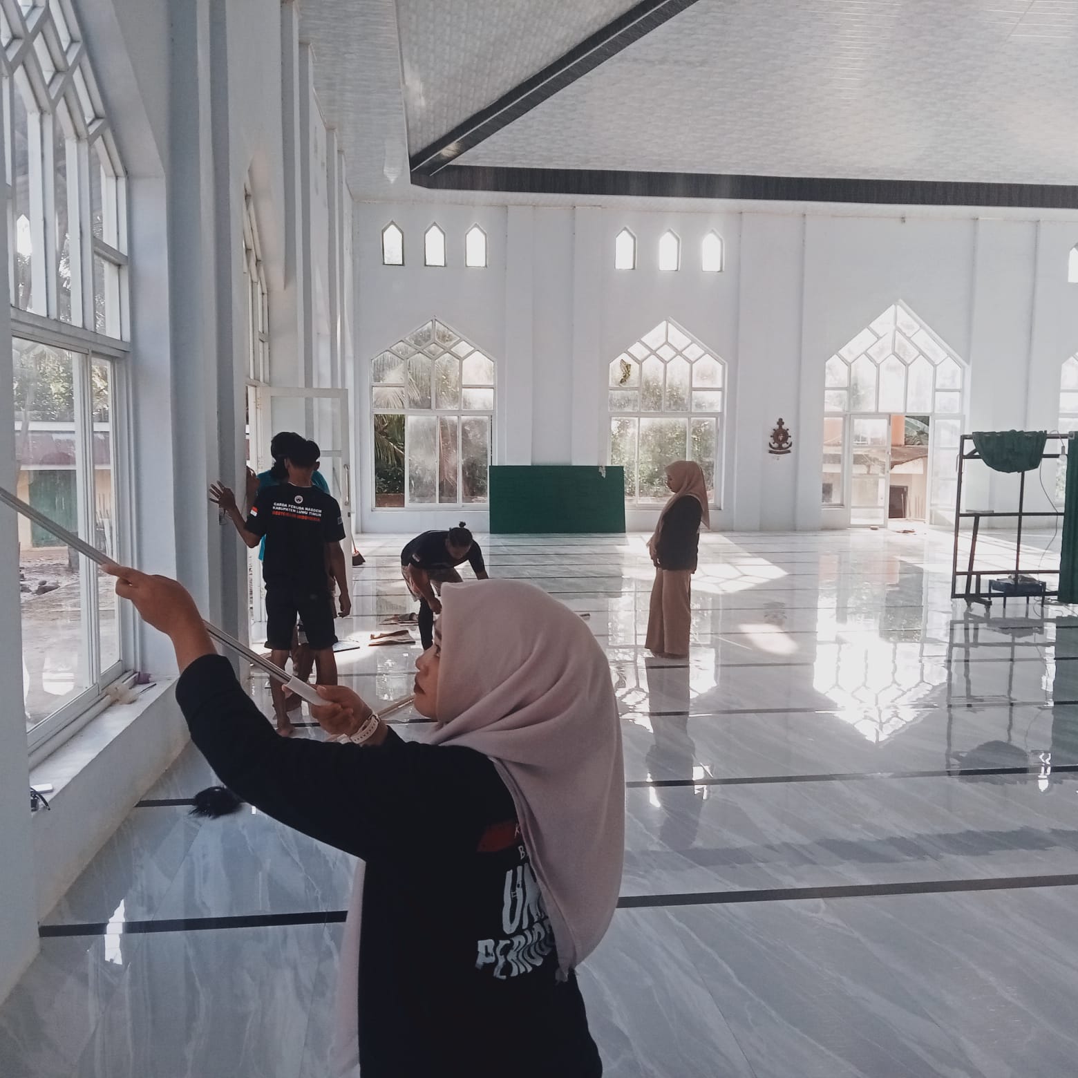 Adapun kegiatan yang dilakukan meliputi pembersihan halaman masjid, merapikan taman, menyapu dan mengepel bagian dalam masjid, hingga membersihkan tempat wudhu dan fasilitas penunjang lainnya.