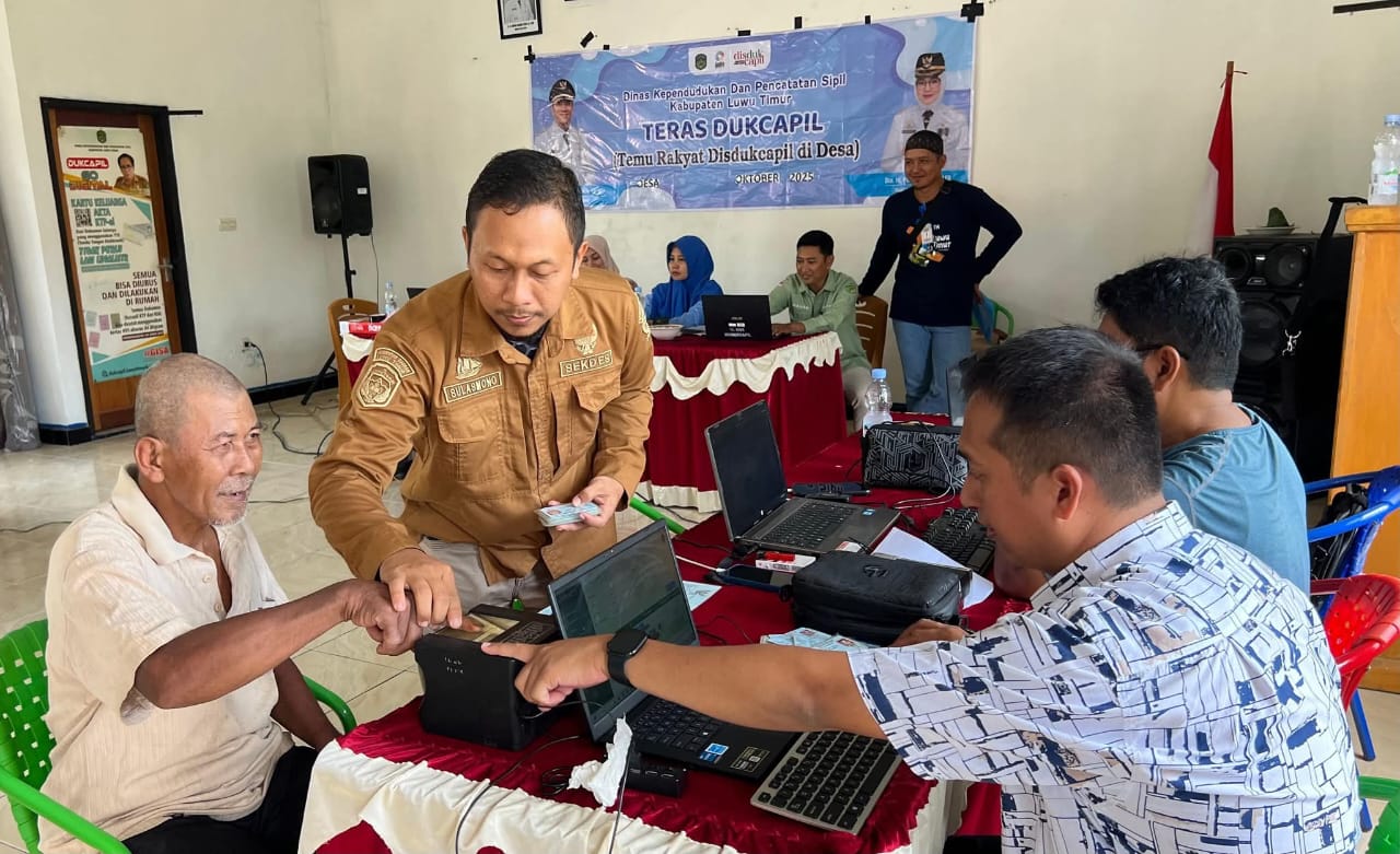 Kegiatan pelayanan ini merupakan bagian dari program inovatif “Teras Dukcapil” milik Dinas Kependudukan dan Catatan Sipil (Disdukcapil) Kabupaten Luwu Timur, yang menghadirkan layanan administrasi kependudukan langsung di desa-desa. Melalui program ini, masyarakat bisa mengurus berbagai dokumen dengan mudah, cepat, dan tanpa biaya, bahkan banyak warga yang mengaku terkejut karena prosesnya selesai dalam hitungan menit.