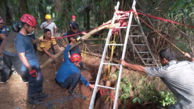 Menerima laporan pada pukul 12.09 WITA, petugas langsung bergerak menuju lokasi kejadian pada pukul 12.15 WITA. Proses evakuasi berlangsung cukup lama mengingat kondisi sumur yang sempit dan dalam, sehingga membutuhkan kehati-hatian serta kerja sama tim.