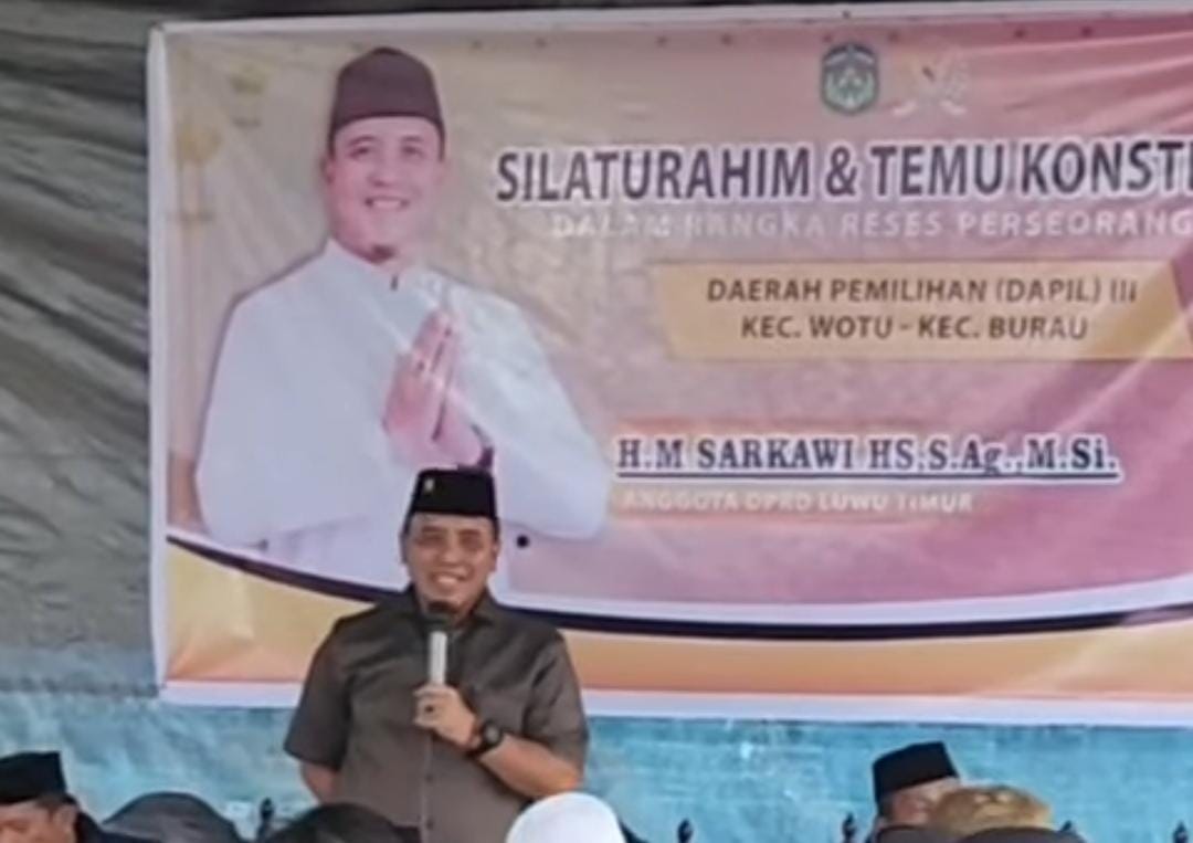 Luwu Timur, Luwurayapos.com – Anggota DPRD Kabupaten Luwu Timur, H.M. Sarkawi HS.S.Ag.,M.Si menggelar kegiatan silaturahmi dan temu konstituen dalam rangka reses perorangan di Desa Bahari, Kecamatan Wotu, Kabupaten Luwu Timur 7/3/2026