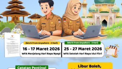 Luwu Timur, Luwurayapos.com – Pemerintah Kabupaten Luwu Timur mengumumkan kebijakan Work From Anywhere (WFA) bagi Aparatur Sipil Negara (ASN) dalam rangka menyambut Hari Raya Nyepi dan Idulfitri tahun 2026. Kebijakan ini diterapkan untuk memberikan fleksibilitas kerja bagi ASN sekaligus memastikan pelayanan kepada masyarakat tetap berjalan…