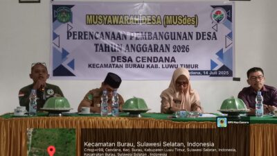 Luwurayapos.com, Luwu Timur – Pemerintah Desa Cendana, Kecamatan Burau, Kabupaten Luwu Timur, menggelar Musyawarah Pembangunan Desa (Musrenbangdes) pada Senin, 14 Juli 2025. Kegiatan ini menjadi momen penting dalam menyusun rencana pembangunan yang partisipatif dan menyeluruh, dengan melibatkan sekitar 60 peserta dari berbagai unsur masyarakat. Turut…