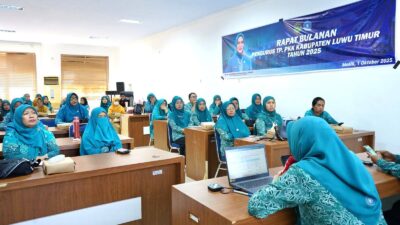 Luwu Timur, Luwurayapos.com – Tim Penggerak PKK Kabupaten Luwu Timur (Lutim) menggelar Rapat Bulanan bersama TP PKK Kecamatan se-Kabupaten Luwu Timur di Aula Media Centre Diskominfo SP, Selasa (30/09/2025). Rapat yang dipimpin Sekretaris PKK Kabupaten Lutim, Asriani, didampingi Ketua Pokja II, Amin ini, dirangkaikan dengan…
