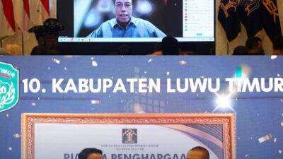 Luwu Timur, Luwurayapos.com – Bupati Luwu Timur, Irwan Bachri Syam, menerima penghargaan dari Kementerian Hukum (Kemenkum) Sulawesi Selatan yang telah mendukung dalam pembentukan Pos Bantuan Hukum (Posbankum) 100 persen di desa/kelurahan. Penghargaan tersebut diberikan langsung oleh Kepala Kantor Wilayah (Kakanwil) Kemenkum Sulawesi Selatan, Andi Basmal,…